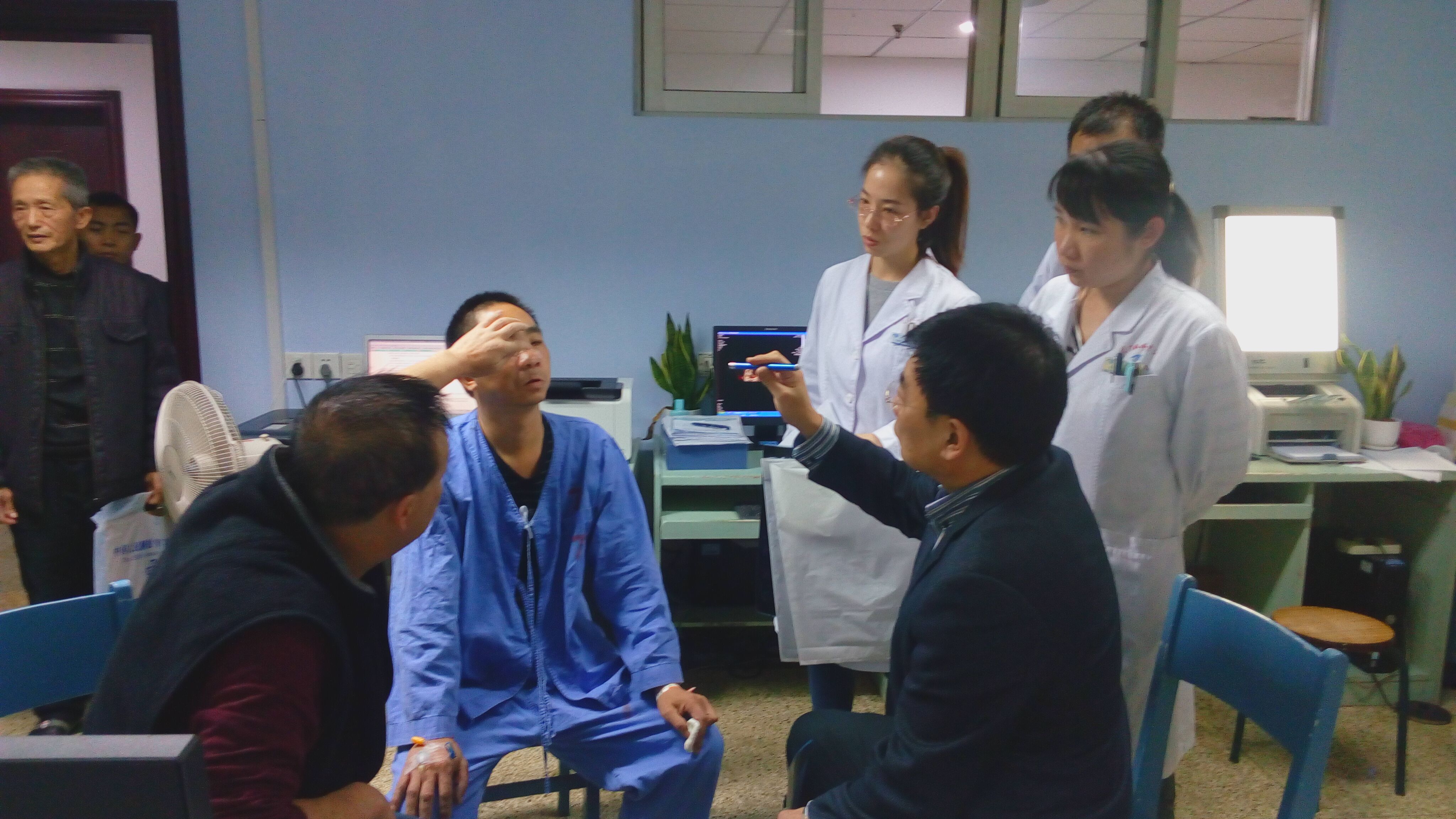 孫教授與眼整形科室的醫(yī)生在給眶骨骨折患者會(huì)診