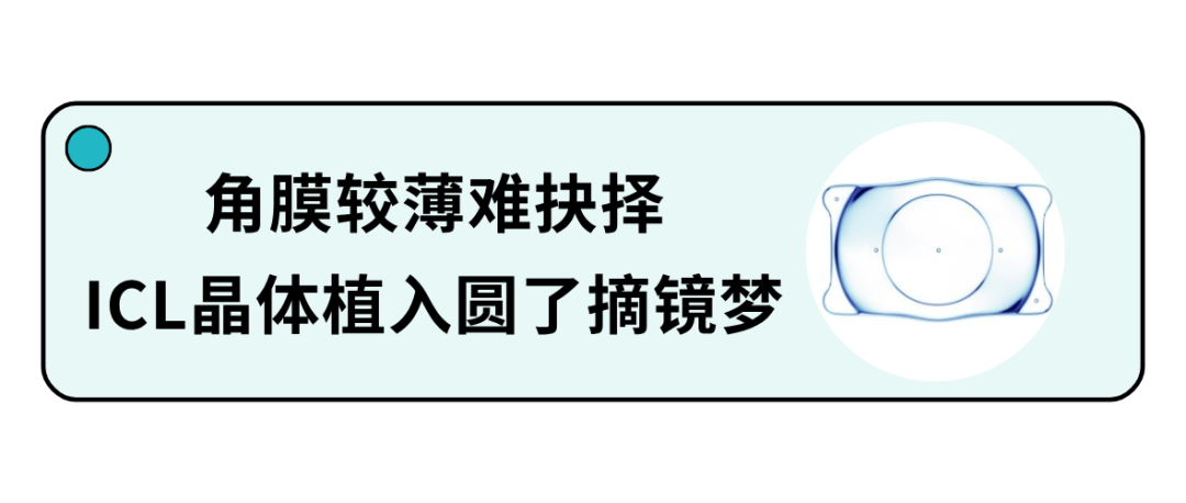 原以為摘鏡夢(mèng)即將破滅,沒想到史小玲主任卻帶來了意外的轉(zhuǎn)機(jī)——“幸好你還可以選擇ICL晶體植入”。