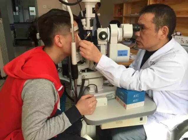 吳護(hù)平主任為角膜移植患者做眼睛檢查