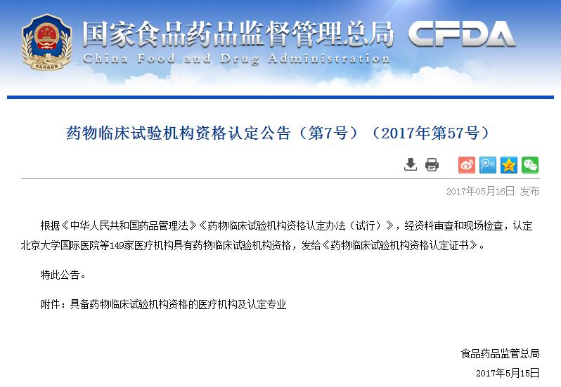 根據(jù)《藥物臨床試驗質(zhì)量管理規(guī)范》、《藥品注冊管理辦法》《藥物臨床試驗機構(gòu)資格認(rèn)定辦法》,經(jīng)資料審查和現(xiàn)場檢查,廈門大學(xué)附屬廈門眼科中心于2017年5月15日由國家食品藥品監(jiān)督管理總局發(fā)布的《藥物臨床試驗機構(gòu)資格認(rèn)定公告》(第7號)(2017年第57號),通告我院藥物臨床試驗機構(gòu)順利通過國家GCP資格認(rèn)定,予以頒發(fā)《藥物臨床試驗機構(gòu)資格認(rèn)定證書》。