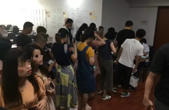 眾人在四樓排隊(duì)等候檢查