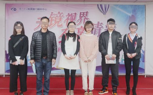 ▲屈光中心科執(zhí)行主任揭黎明與獲獎者合影
