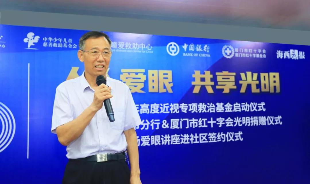 廈門市衛(wèi)生健康委員會、廈門市紅十字會、廈門市關心下一代工作委員會等部門領導,原衛(wèi)生部近視眼實驗室主任褚仁遠教授,以及廈門眼科中心總院長黎曉新教授,華廈