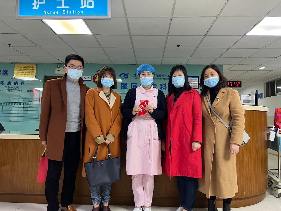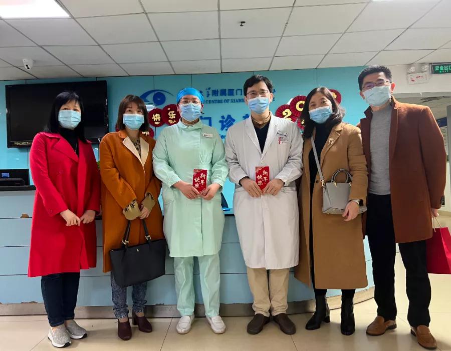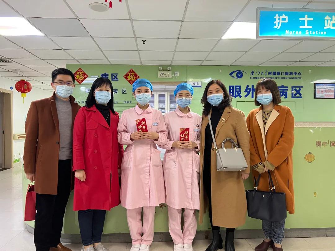 春暖大地百花艷,福滿(mǎn)人間萬(wàn)象新。在舉家團(tuán)圓的時(shí)刻,仍有人堅(jiān)守在工作崗位。除夕當(dāng)天,廈門(mén)眼科中心執(zhí)行總經(jīng)理姚鄭玲玲、副總經(jīng)理賴(lài)瑋玲、工會(huì)主席張美嫦、人力資源部總監(jiān)石磊等院領(lǐng)導(dǎo)班子成員深入病區(qū),看望并慰問(wèn)春節(jié)期間堅(jiān)守一線的醫(yī)務(wù)人員、值班后勤人員,為他們送上真切的關(guān)懷與新春的祝福。感謝他們節(jié)日期間恪守盡職,就他們?cè)谶^(guò)去一年中的辛勤付出表示肯定,對(duì)疫情防控緊要關(guān)頭做出的積極貢獻(xiàn)致以崇高的敬意。