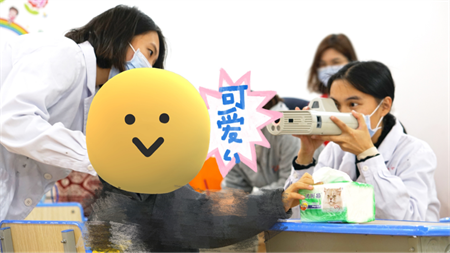 在校方工作人員的協(xié)助下,廈門眼科中心眼健康管理中心的小姐姐們耐心引導著孩子,嘗試讓他們觀察視力表上“小鱷魚”嘴巴張開的方向,努力讓他們看向手持視力篩查儀中的熱氣球。就這樣她們花了近三個小時才完成了所有孩子的視力和屈光篩查。