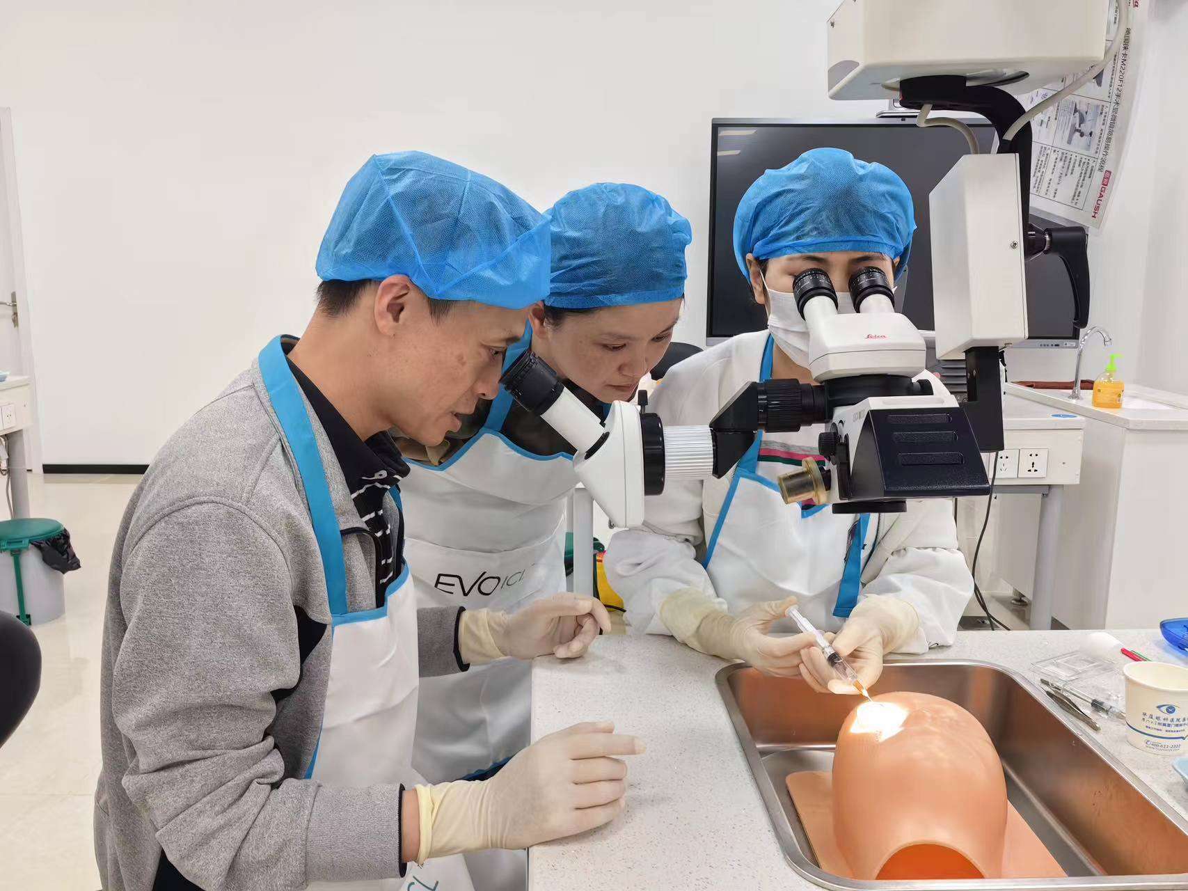 導(dǎo)師們手把手給學(xué)員講解手術(shù)方案設(shè)計(jì),指導(dǎo)學(xué)員在動(dòng)物眼上操作,帶領(lǐng)學(xué)員們逐一剖析手術(shù)過程中存在的難點(diǎn)、要點(diǎn),對(duì)每位學(xué)員的操作都進(jìn)行細(xì)致的復(fù)盤講解,讓每位學(xué)員都能有所學(xué)、有所知、有所獲,從實(shí)踐到理論夯實(shí)手術(shù)技巧。