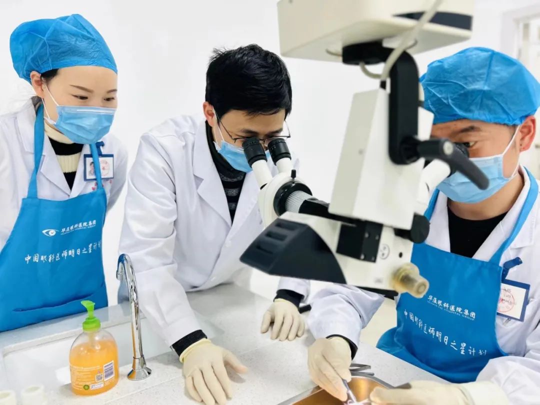 ▲修陽暉(中)帶教中國眼科明日之星學(xué)員進(jìn)行動物眼顯微手術(shù)操作